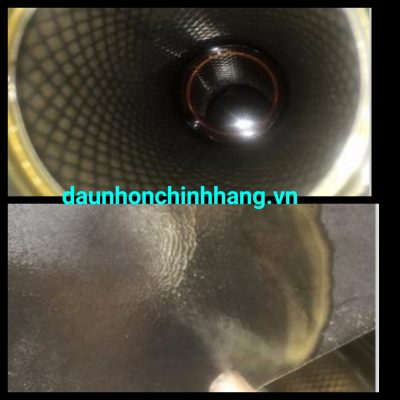 2. Lọc tách dầu kém chất lượng, khả năng tách dầu kém hiệu quả dẫn đến dầu sẽ bị thoát ra ngoài cùng với khí nén, nhất là khi máy nén khí vận hành ở nhiệt độ và áp suất làm việc cao. Dưới đây là hình ảnh thực tế chúng tôi chụp được từ một nhà máy sử dụng lọc tách dầu kém chất lượng dẫn đến khả năng tách dầu kém, dầu thoát ra rất nhiều theo đường khí nén.